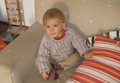 Pronto, lá está... não só o puto tem um cabelão (não é muito, é só mesmo comprido!), como é todo a dar p’ró revirado nas pontas!!!! É desta que vou realizar o meu sonho de criança e armar-me em cabeleireira!